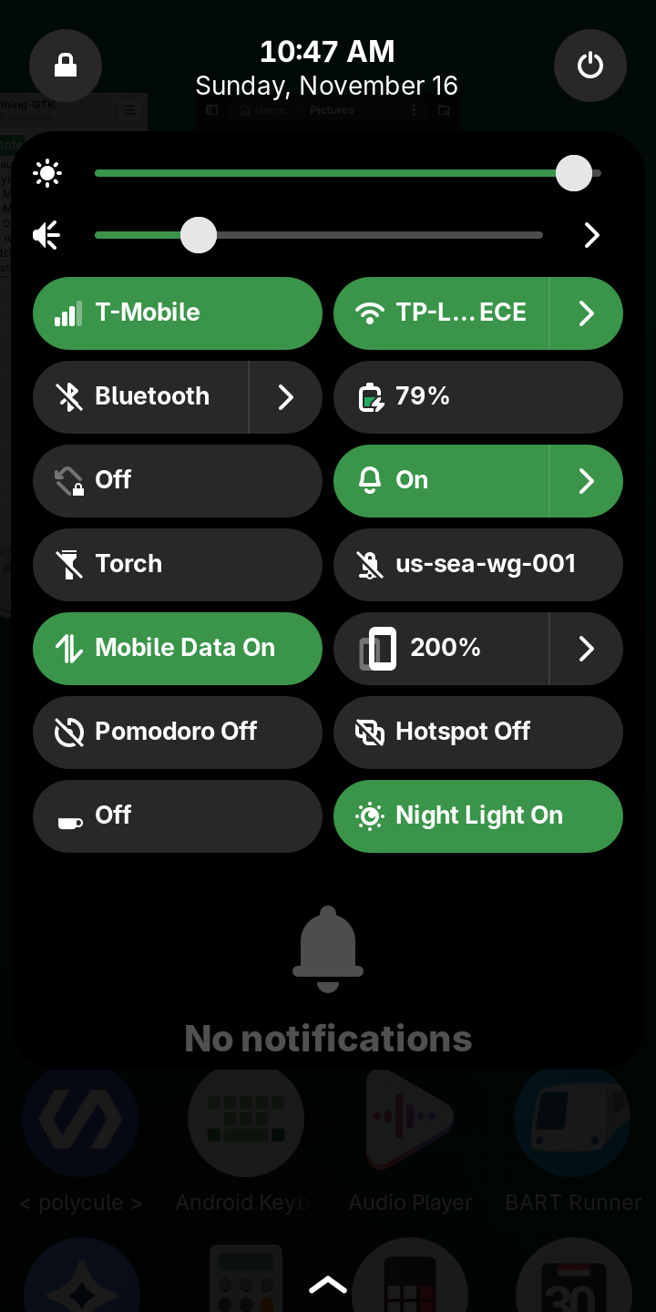 This one was the one drop-dead end-of-the-experiment-on-day-one feature; if I couldn't make and receive calls/txts then what was I even doing? I had seen people talk about issues with calling and texting for years on Linux so I expected some hiccups but to my delight everything has been smooth sailing (besides some initial issues with Verizon but that will have to be its own post).