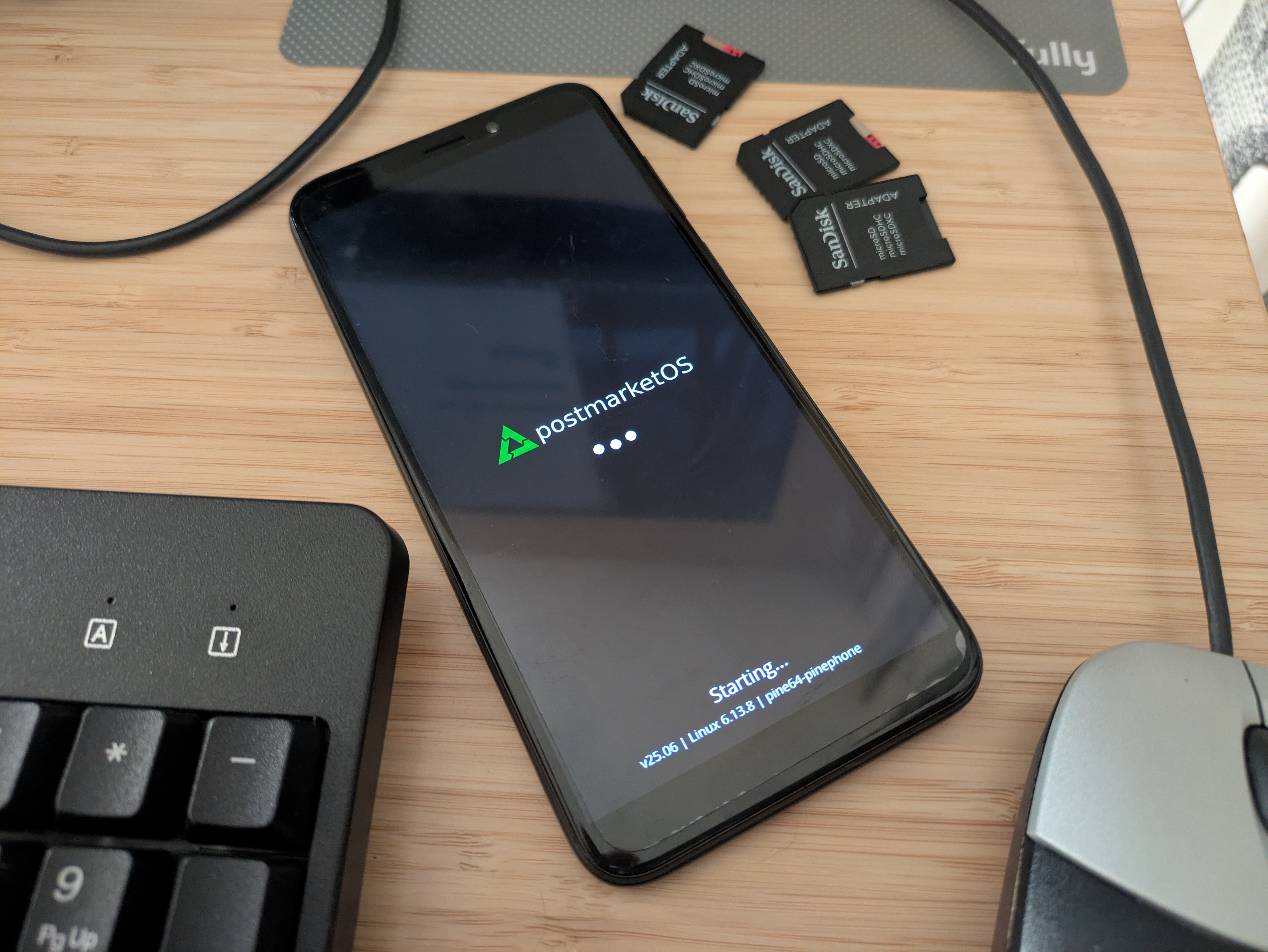 PostmarketOS/Phosh on a spare SD card to get me by until I got home, so